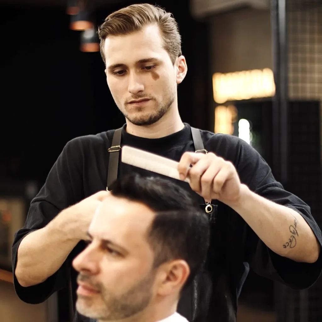 Corte moderno ou clássico com acabamento impecável, feito por barbeiros especialistas no seu estilo.